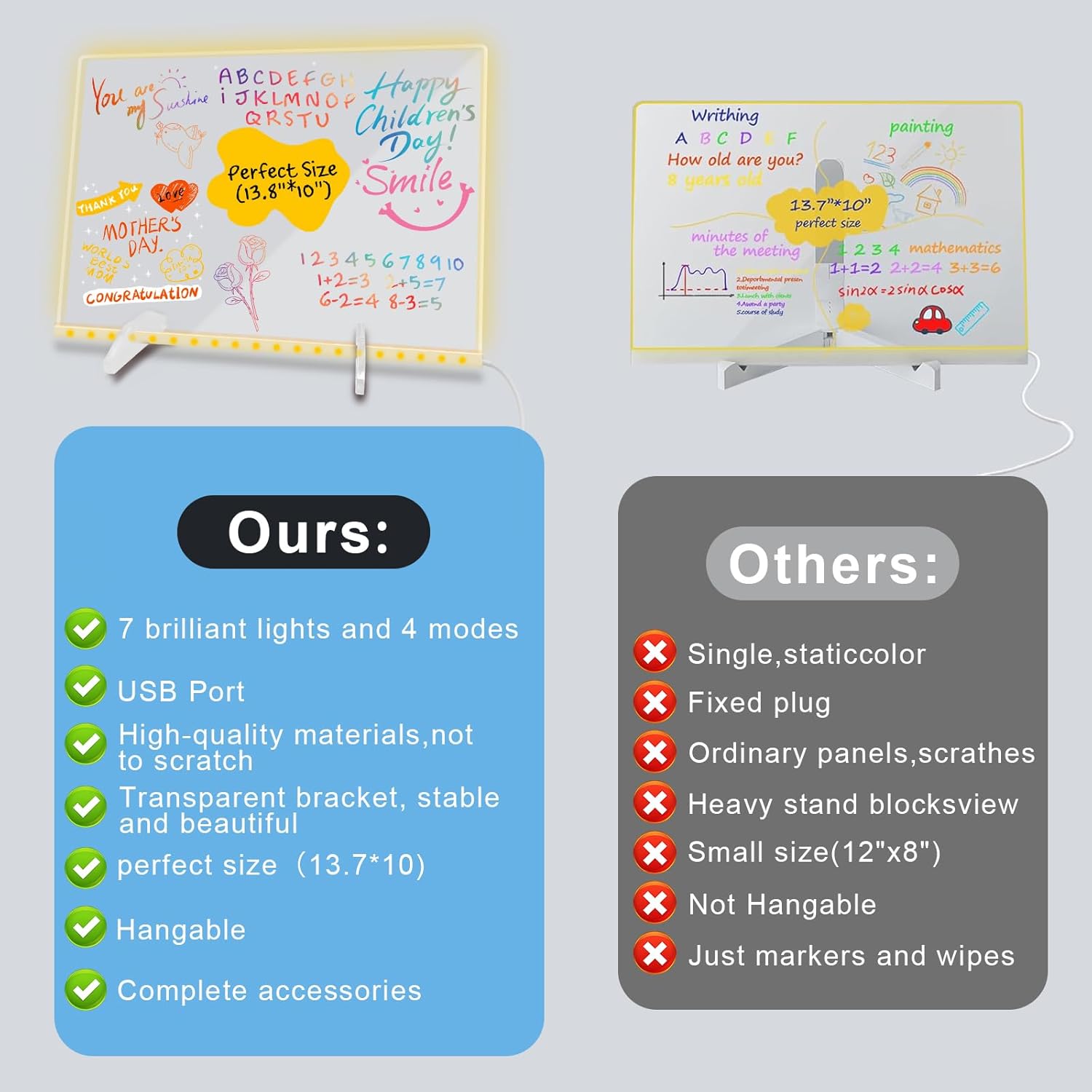 - Upgraded acrylic message board, repeated erasing: It uses high-quality acrylic water-soluble material that can be repeatedly erased and scratch-resistant surface without leaving marks. It can be easily wiped with a rag or spray. The large size of 13.7×10 inches can meet more writing or drawing needs, suitable for long-term use, environmentally friendly and paper-saving, and is an ideal choice for children's learning, family management and office planning