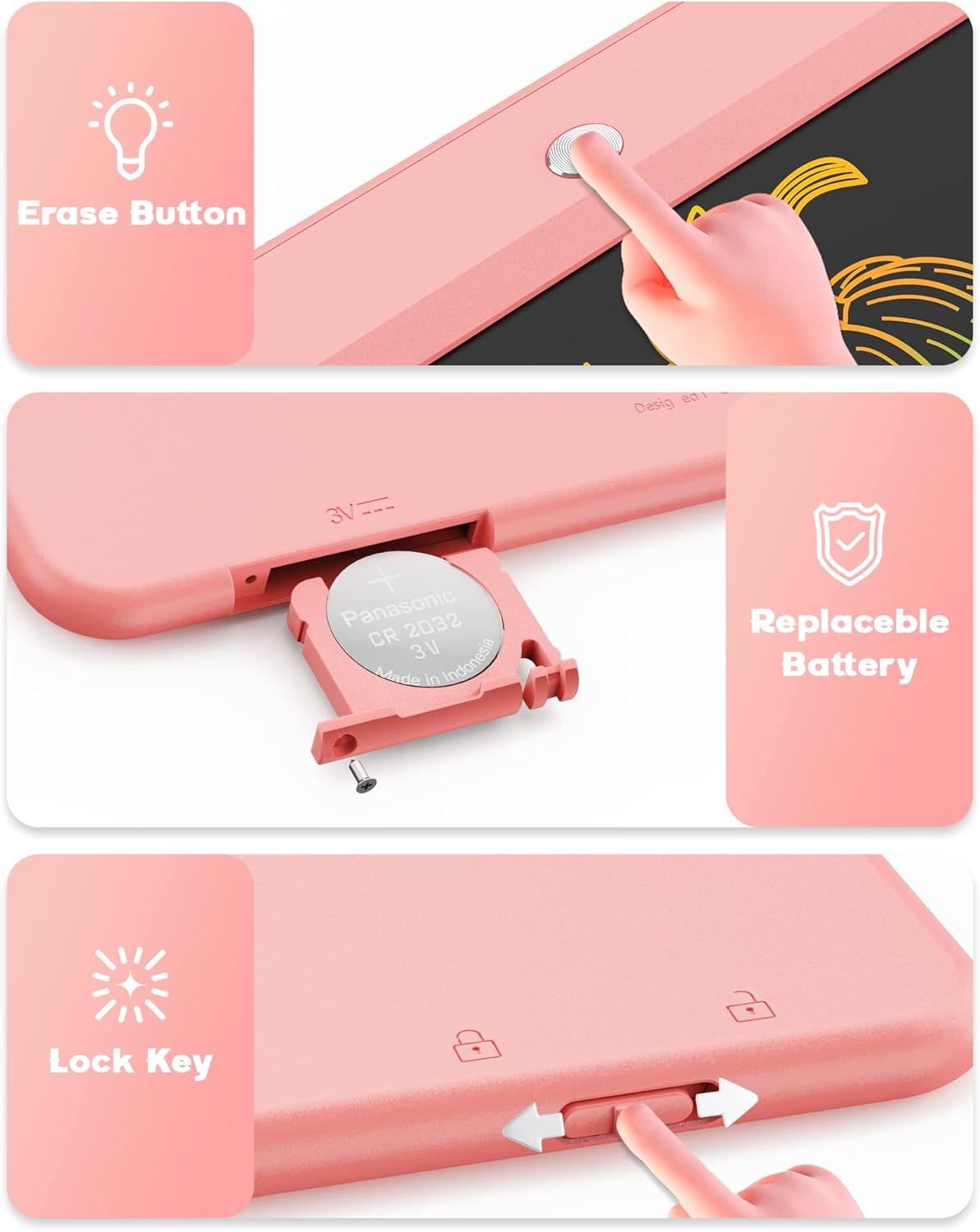 - EYE PROTECTION COLOR SCREEN: 10-inch LCD colorful screen, easy for viewing and graffiti, free child’s imagination. This drawing tablet without radiation, no glare, safe and comfortable, even kids use for a long time. Great educational preschool toys age 3 boys girls!
