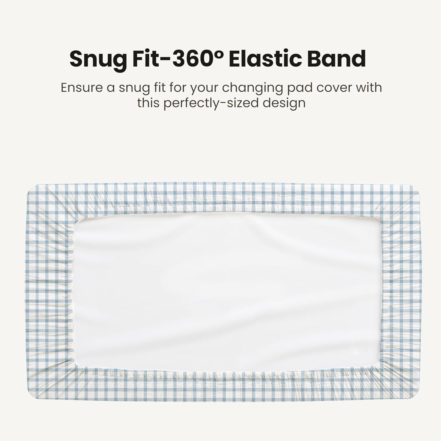 - Snug Fit: Our muslin changing pad cover measures 32” x 16”and features a fully encased 360-degree elastic. This design ensures a snug and secure fit on your changing pad. Say goodbye to slipping covers during diaper changes!
