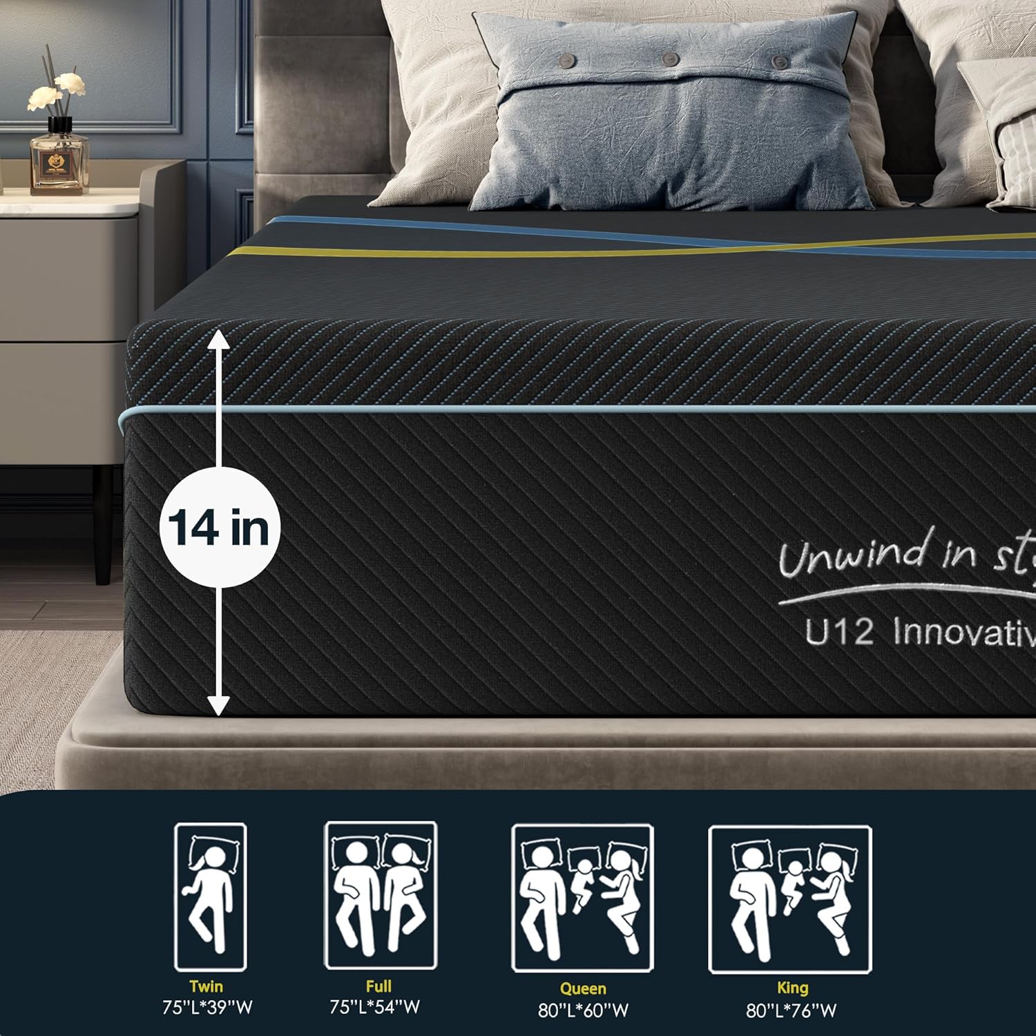14 inch Queen Mattress Multi-Layer Memory Foam Mattress - Medium Firmness with Bamboo Charcoal & Green Tea Infusion