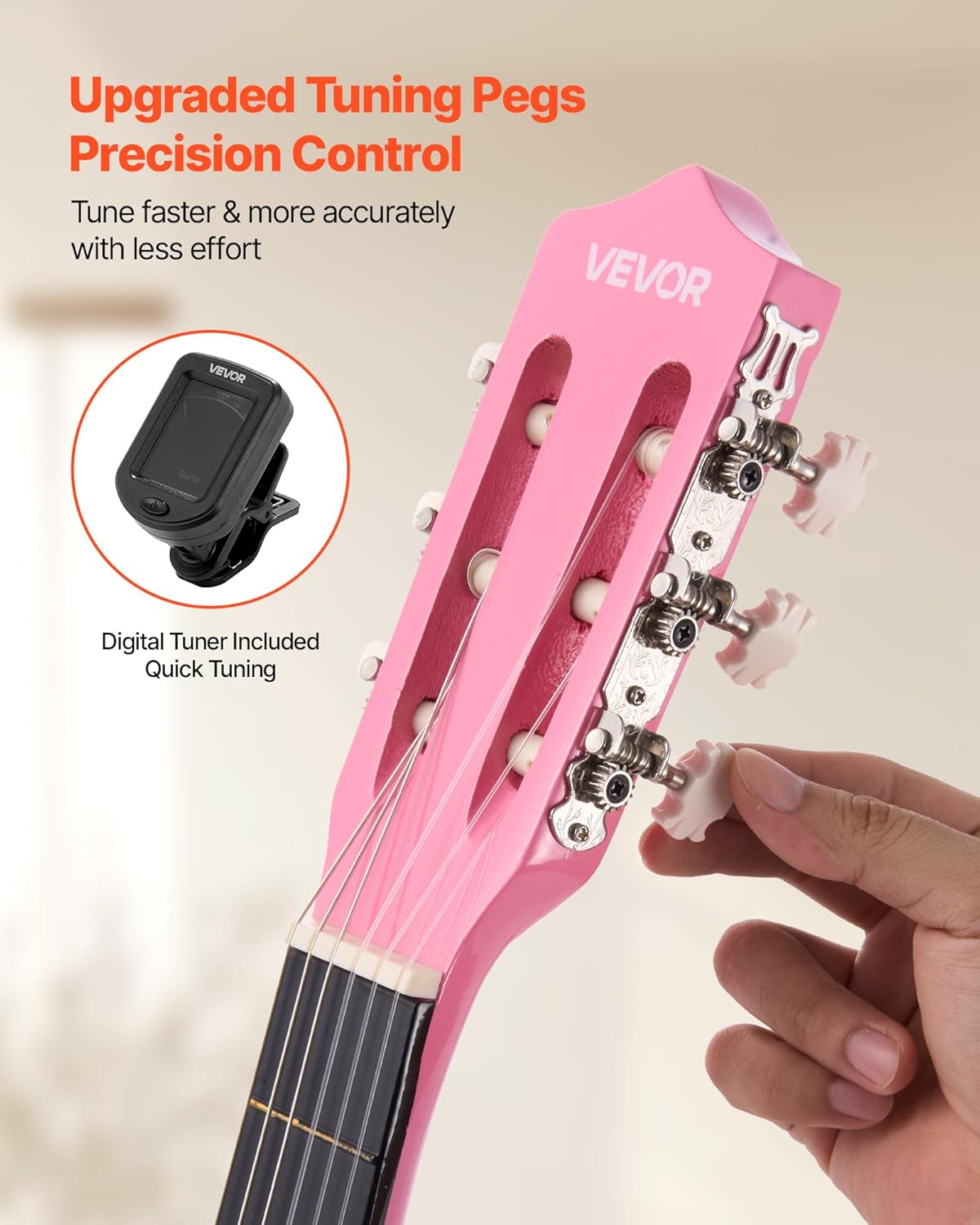 - Easy & Accurate Tuning: Featuring upgraded high-precision tuning pegs, this classical acoustic guitar beginner kit makes tuning a breeze—even for beginners. The included tuner allows precise and fast tuning, delivering a clear sound