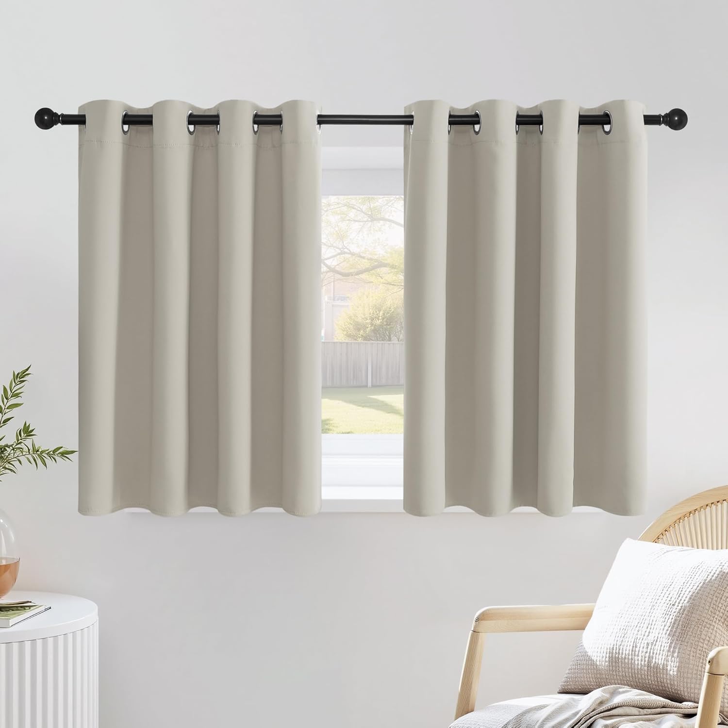 NICETOWN Blackout Kitchen Curtains 36 inch Length, Grommet Thermal Insulated Solid Vertical Window Drapes Room Darkening for Nursery, Natural, Set of 2, W52 x L36