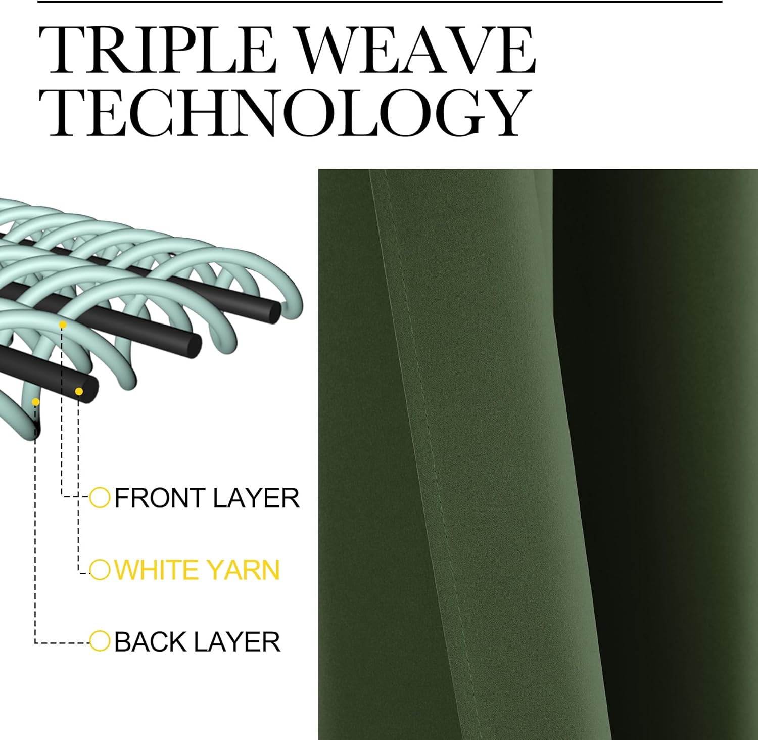 NICETOWN Room Darkening Dark Green Curtains for Windows, Grommet Thermal Drapes Window Treatments Sound Reducing for Bedroom/Living Room, W52 x L84, 2 Panels