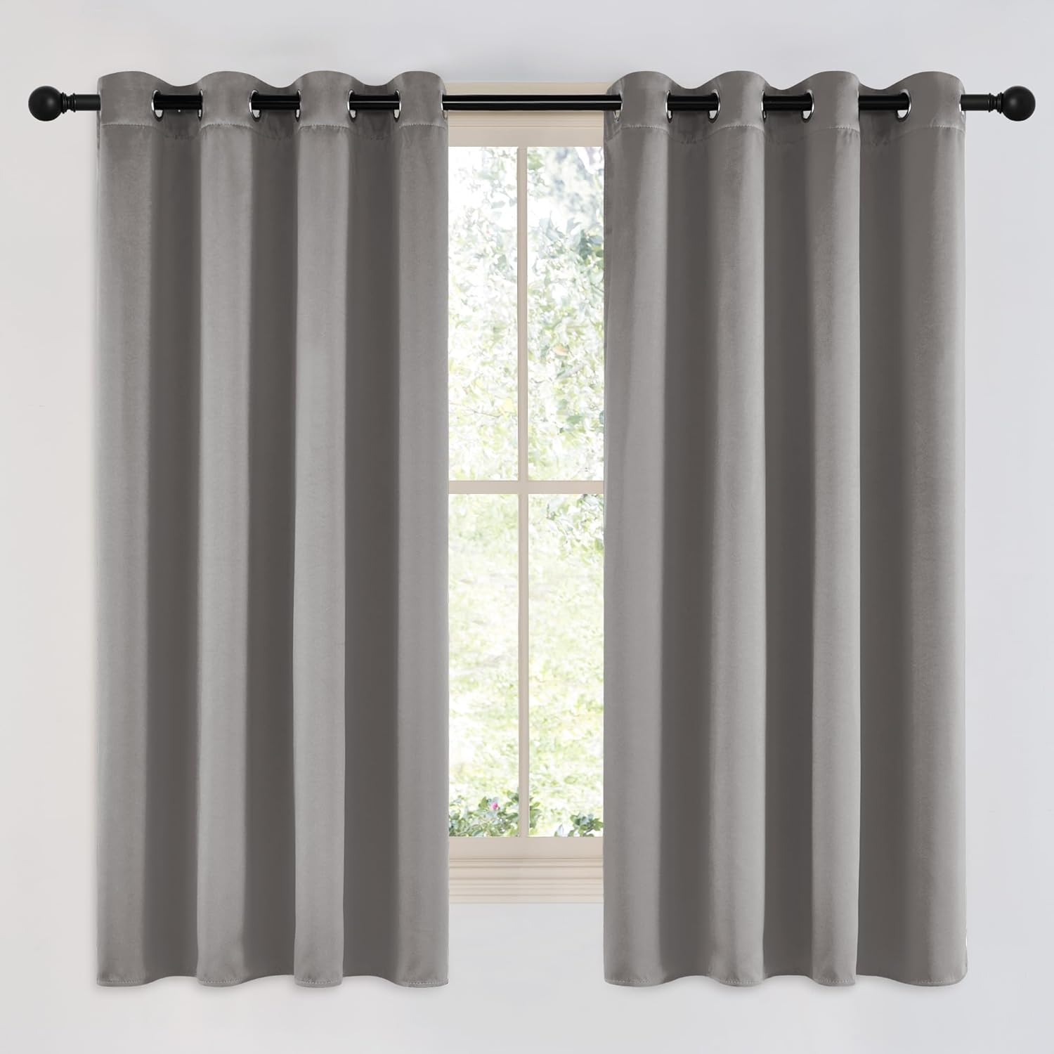 NICETOWN Chrome Gray Bedroom Curtains 63 inch Length 2 Panels, Grommet Window Treatment Thermal Insulated Solid Faux Silk Room Darkening Drapes for Kids Room, W52 x L63