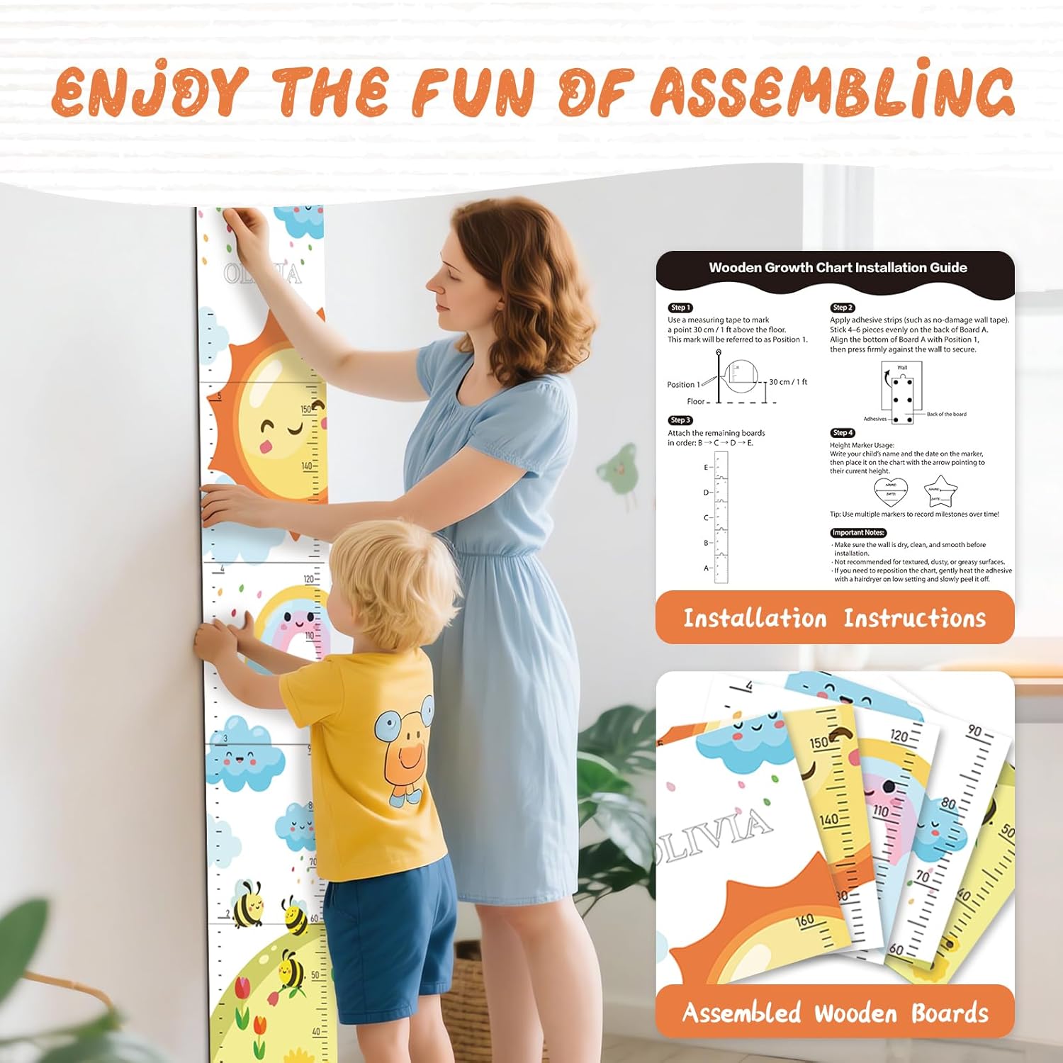 Personalized Name Growth Chart for Wall, Sun Rainbow Height Chart for Kids, No-Drill Growth Chart for Wall, Perfect as Kids Room Decor & Thoughtful Birthday Gift for Boys and Girls