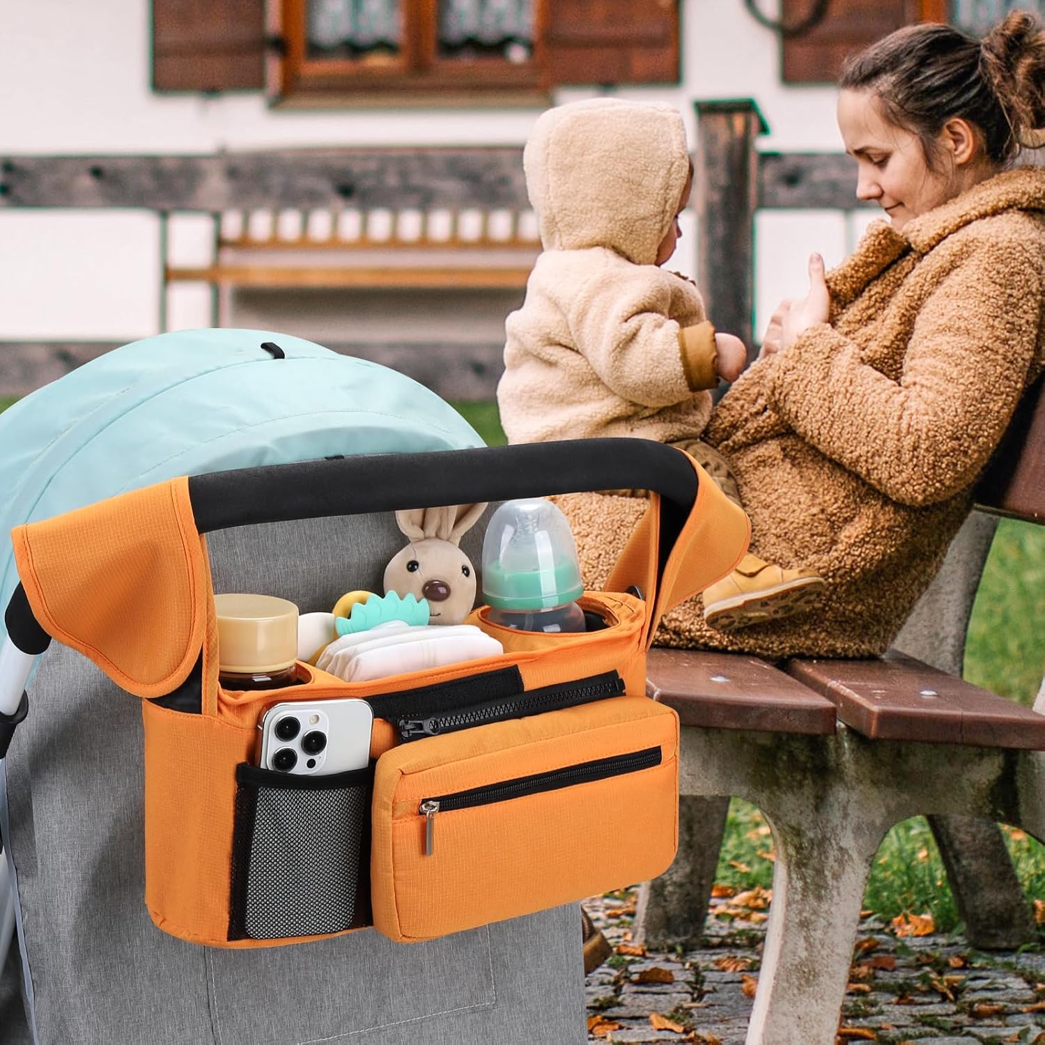 - Multiple Usage Methods : It can be hung as a stroller cup holder organizer on the stroller. When you don't need to use a stroller, you can also install the accompanying strap and carry this organizer bag for easy outing.