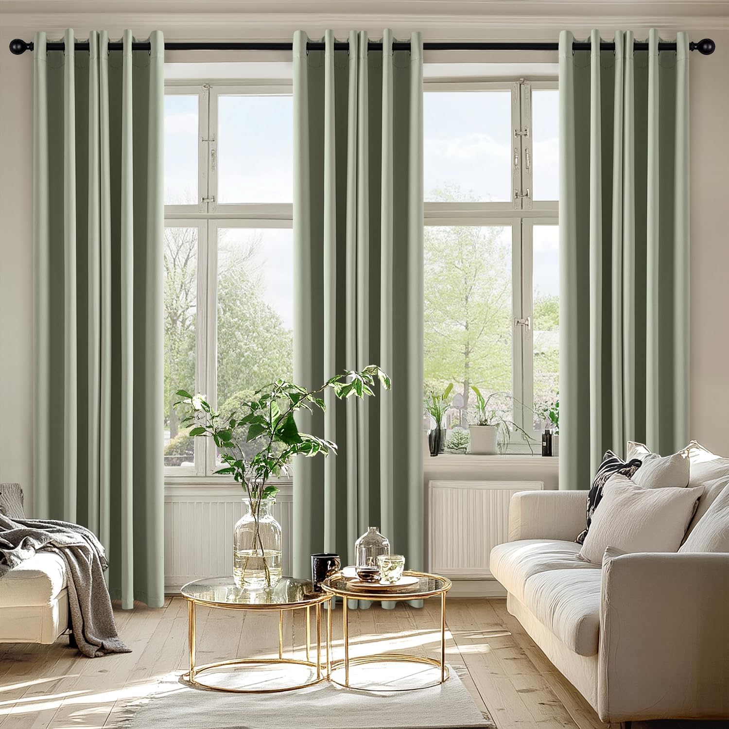 MIULEE Sage Green Blackout Curtains for Bedroom Living Room 86 Inches Long 2 Panels, Thermal Insulated Room Darkening Drapes Solid Grommet Top Noise Reducing Light Green Window Treatments 40x86 Inch