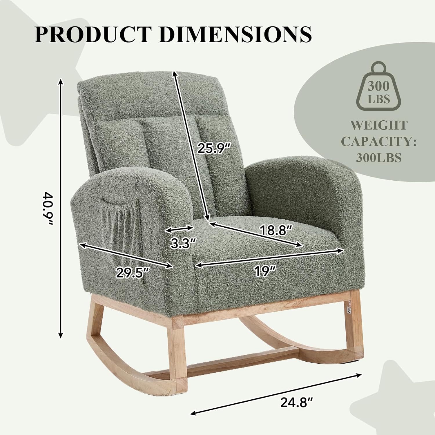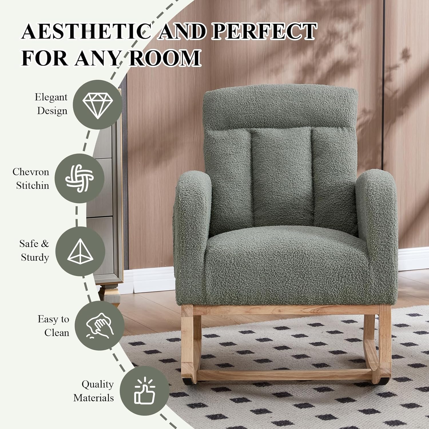 NIOIIKIT Nursery Rocking Chair, Teddy Upholstered Glider Chair with Side Pocket, Glider Rocker Chair with Tufted Back, Comfy Accent Nursing Chair for Living Room (Olive Green Modern)