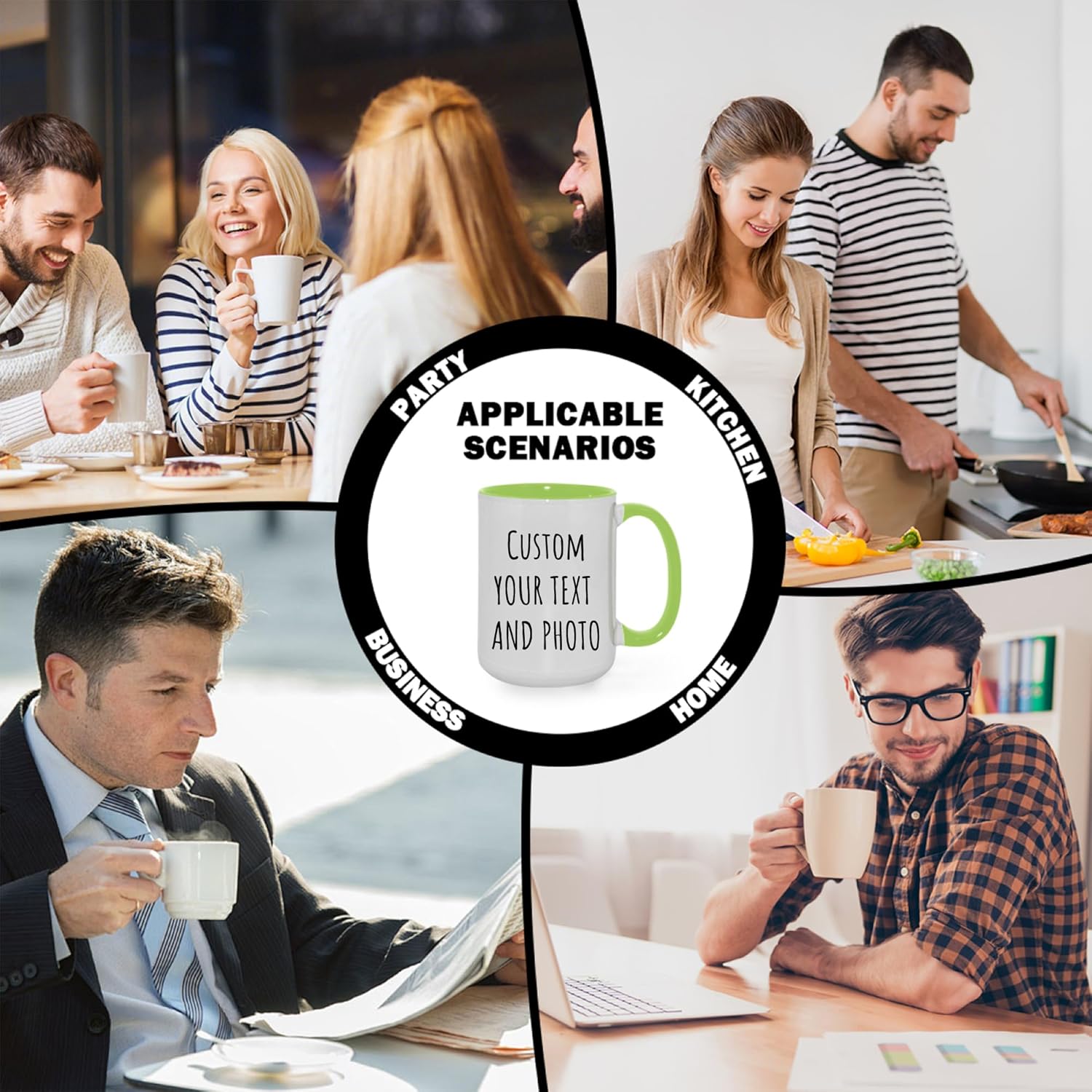 Custom Mug Upload Your Picture Personalized Coffee Mug with Photo Text Name Customized Cup Unique Ideas Gifts for Men Women Mom Dad Girlfriend Boyfriend Friend Family (Green, 11oz)