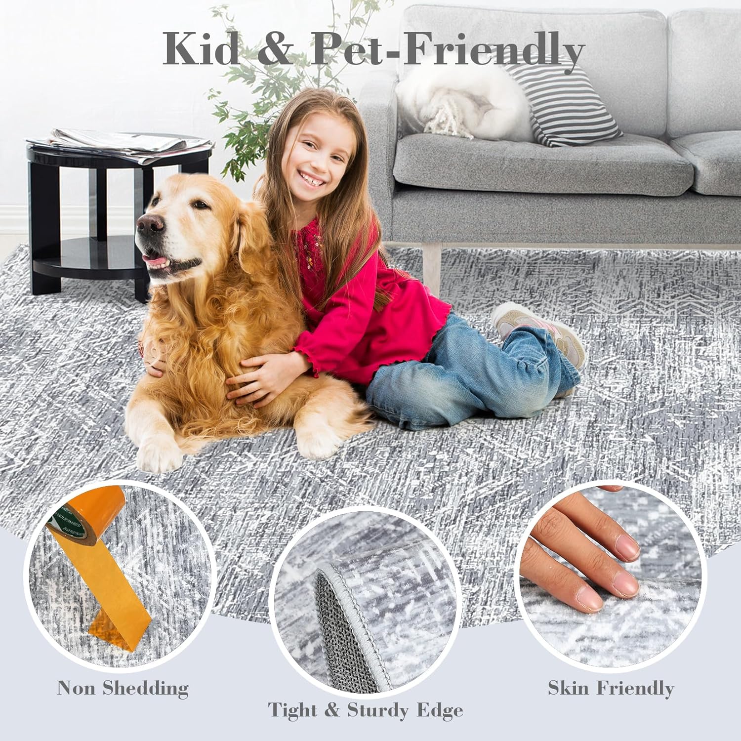 - [Secure Non-Slip Backing]: Equipped with a TPR non-slip backing, this area rug stays securely in place on any surface, reducing slips and making it especially safe for families with kids and pets