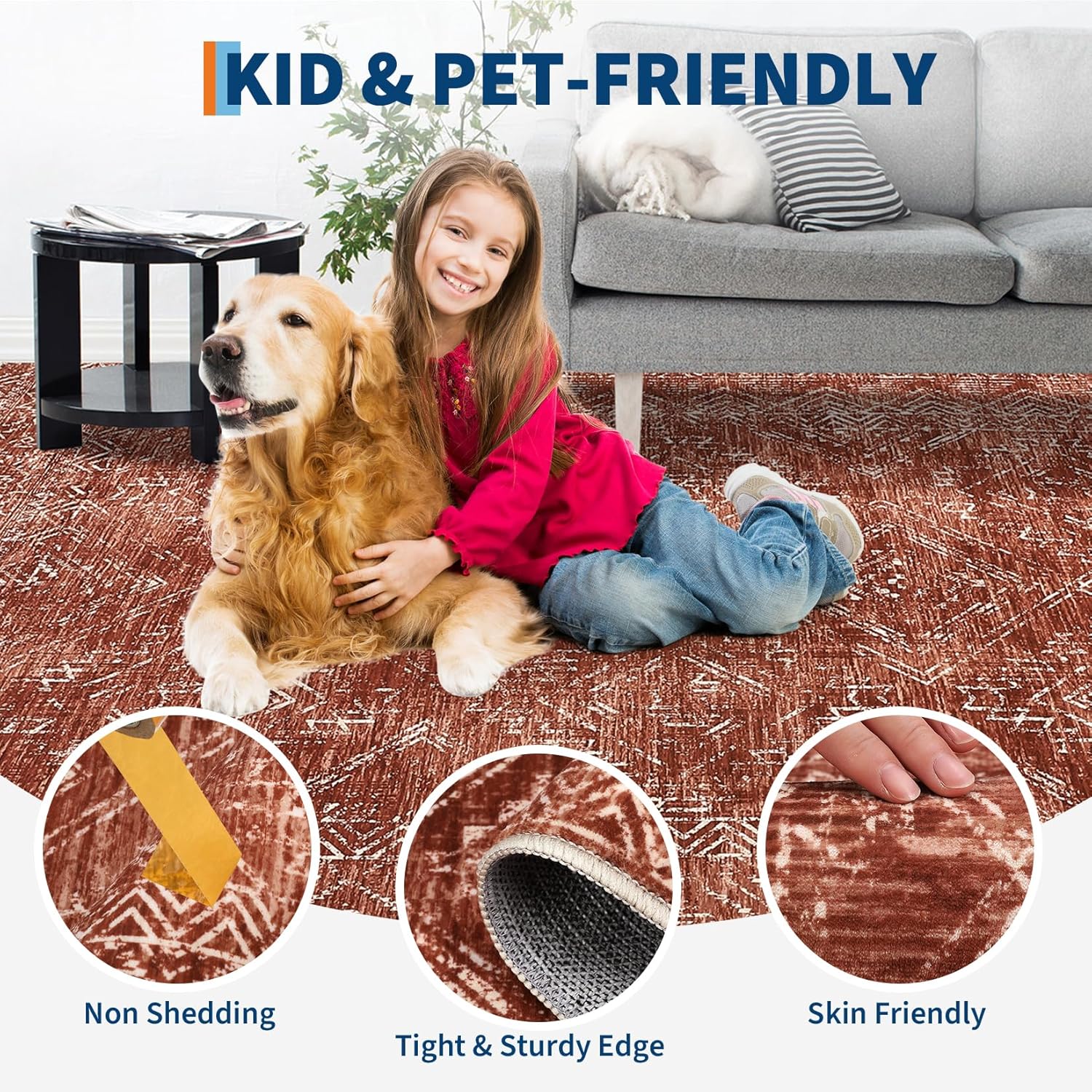 - [Secure Non-Slip Backing]: Equipped with a TPR non-slip backing, this area rug stays securely in place on any surface, reducing slips and making it especially safe for families with kids and pets