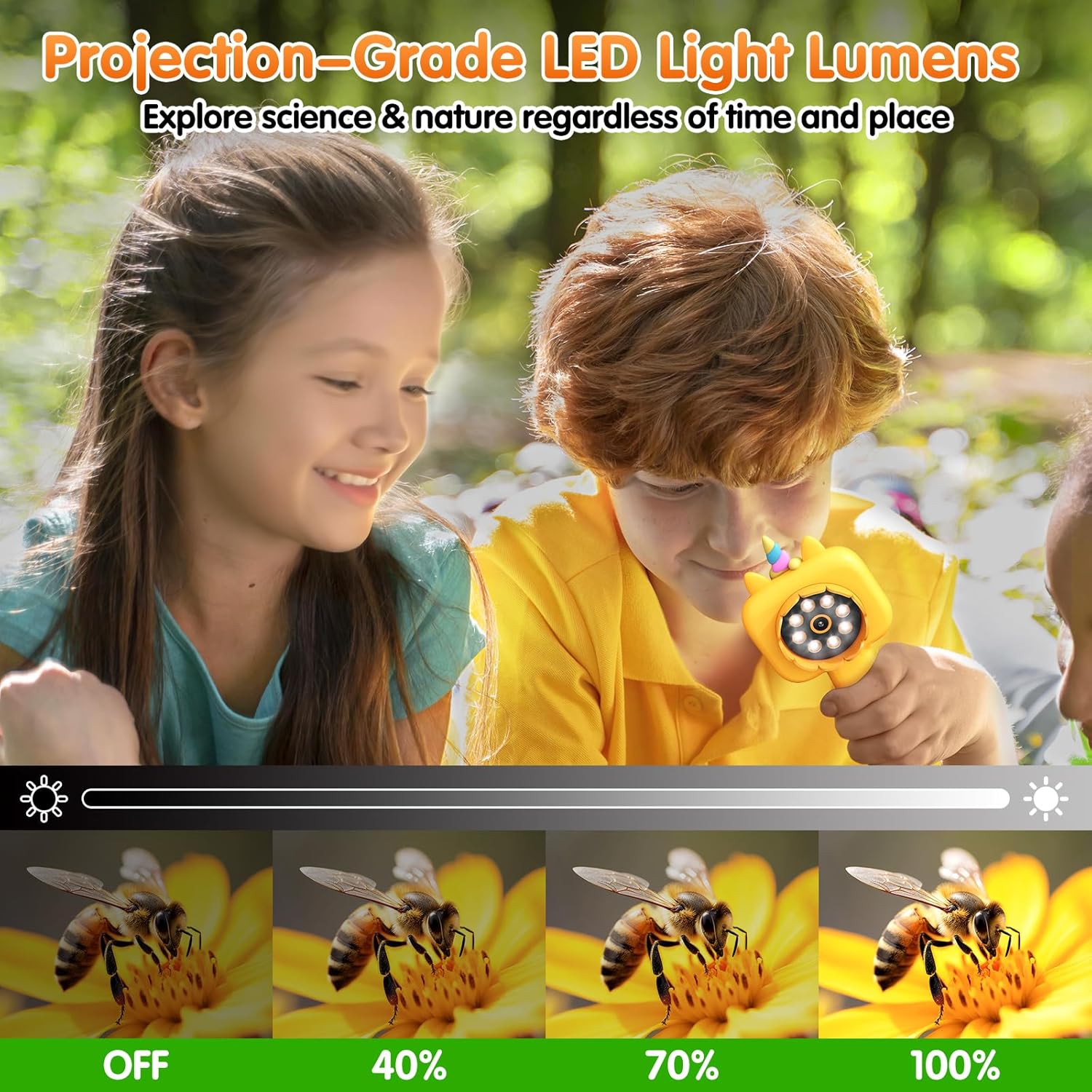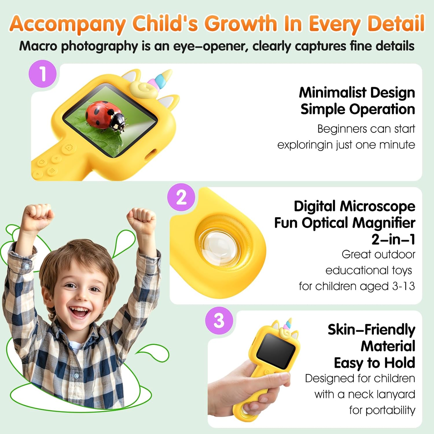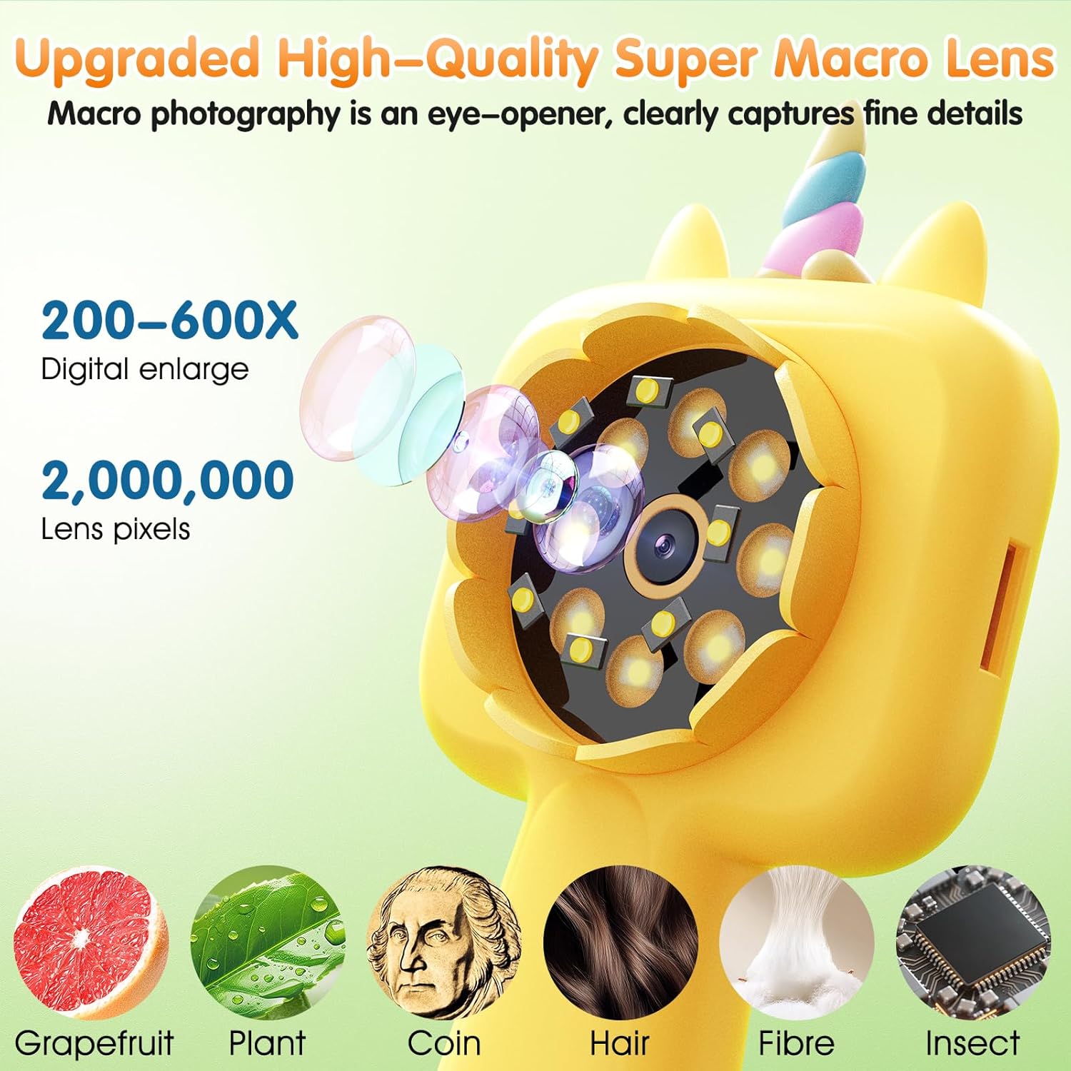 - 🔬【Portable Mini Microscope】The pocket microscope comes with a detachable unicorn cartoon silicone protective cover and a neck lanyard. Imagine the joy on your child's face when they unwrap this gift on their birthday or Christmas! It is not only an outdoor toy that brings joy to children, but also stimulates their scientific interest and creativity. It is a perfect birthday, Christmas, holiday gift for 3 4 5 6 7 8 9 10 11 12 13 year old boys and girls