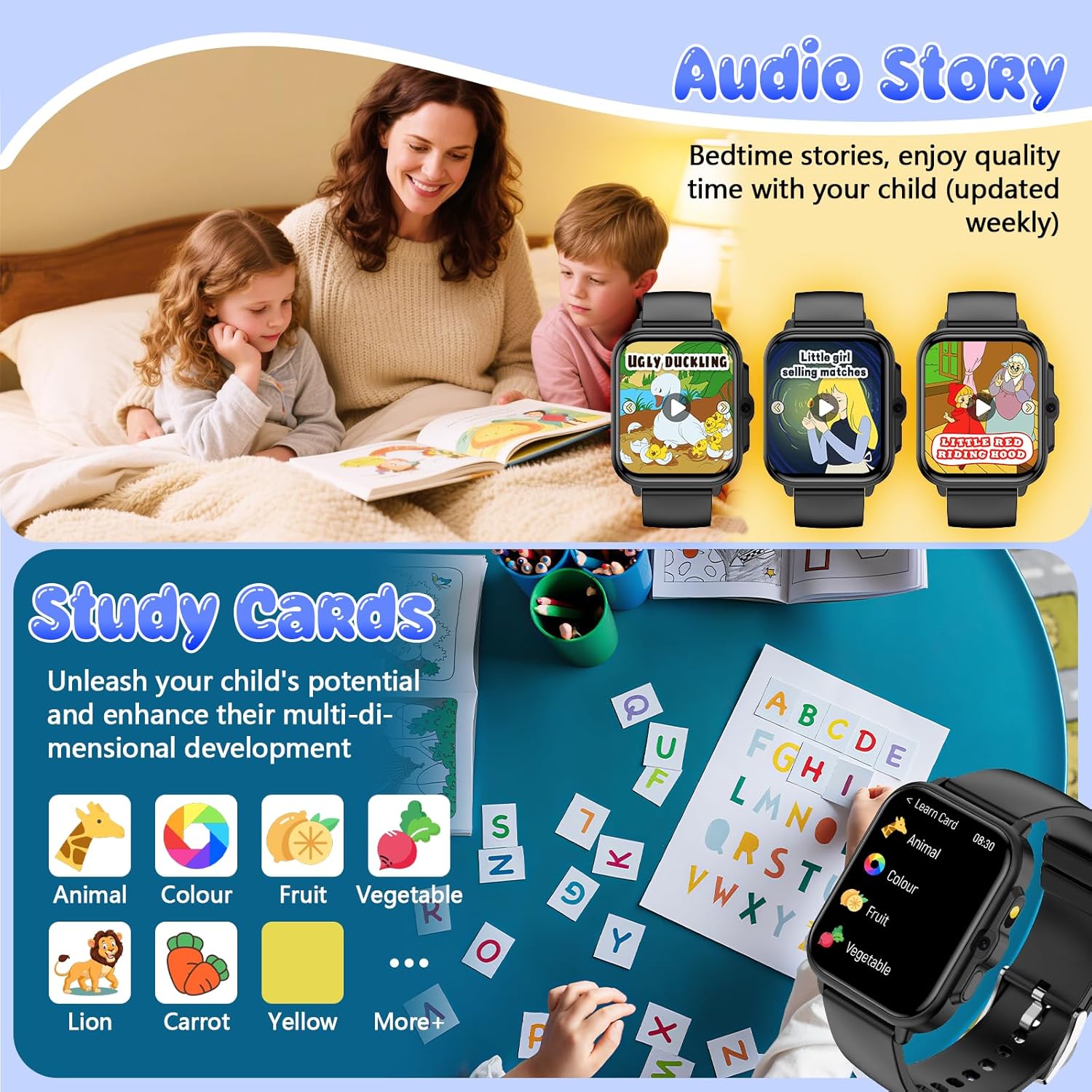 - Learning & Entertainment - This upgraded children's watch blends educational and entertainment features, offering weekly audiobook updates and downloads to enhance reading and cognitive skills. It features over 10 educational games to train children's logical thinking, memory, and quick thinking skills. New AI Q&A and AI Translation features are also available. With just voice input, AI Q&A answers children's curiosity and questions, while AI Translation helps children solve language communication problems.