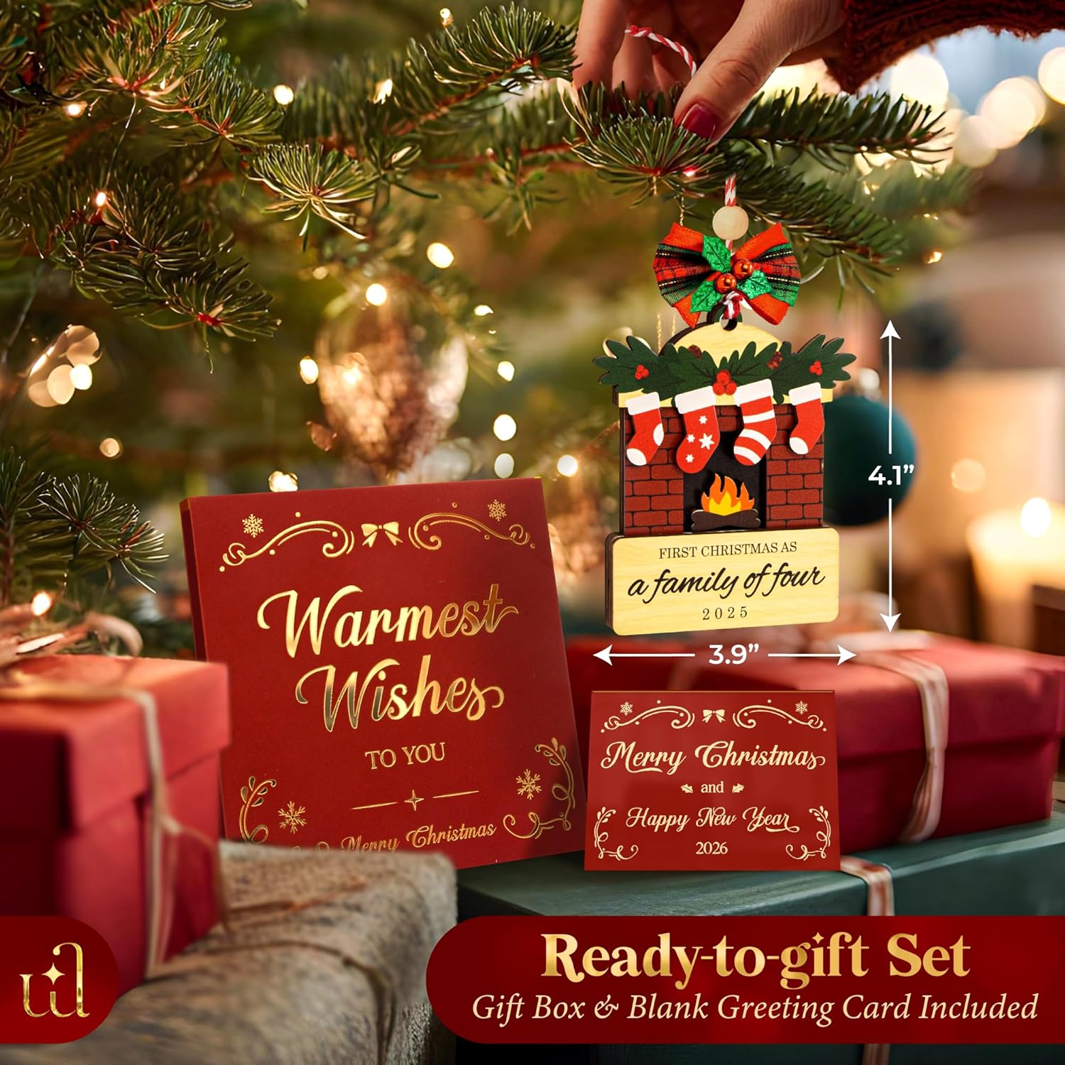 - Family of 4 Christmas Ornament 2025: Celebrate the magic of the holidays with our family of 4 christmas ornament 2025. Designed as a first christmas as a family of 4 ornament, it’s a meaningful keepsake that beautifully marks this special milestone.