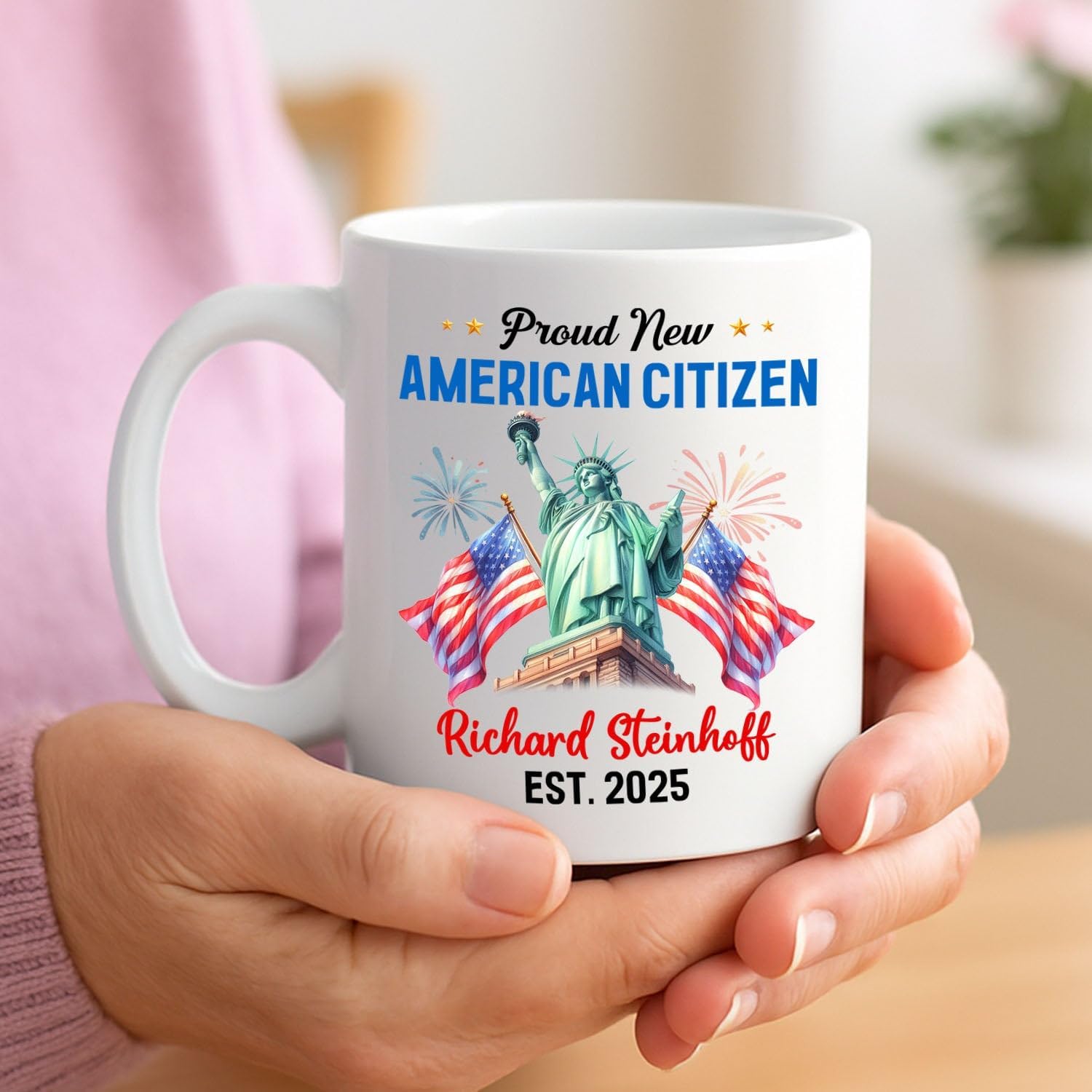 - ☕ AVAILABLE IN TWO SIZES: Our Proud New American Citizen ceramic mug comes in two popular sizes. Choose between the classic 11oz or the larger 15oz size — ideal whether you enjoy a small morning brew or need a bigger cup to get through the day. Great for home, office, or on-the-go use.