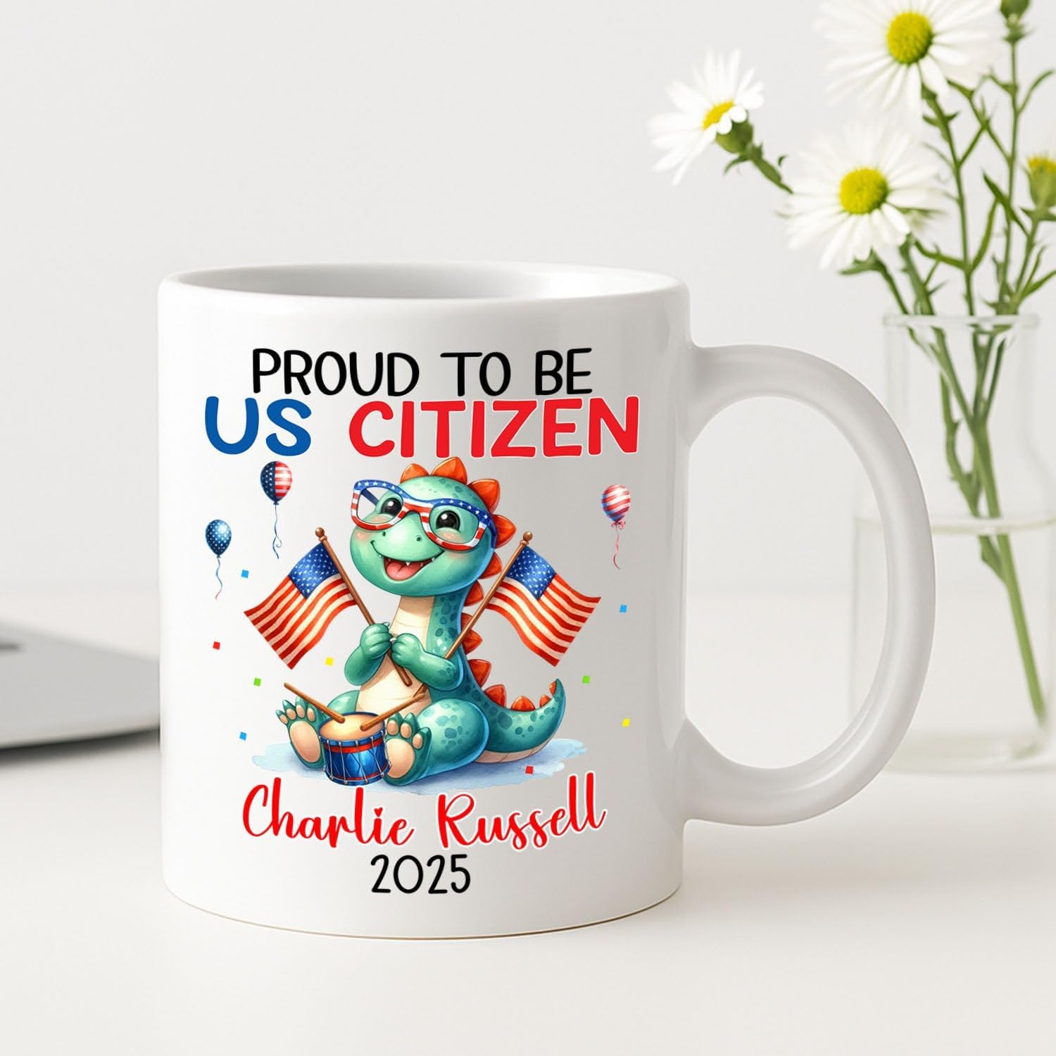 Personalized American Citizen Coffee Mug, Proud To Be Us Citizen Coffee Cup Gift For Grandkid Friend Bestie, Customized Year & Name US Citizenship White Cup, Awesome American Flag Ceramic Mug 11 15Oz