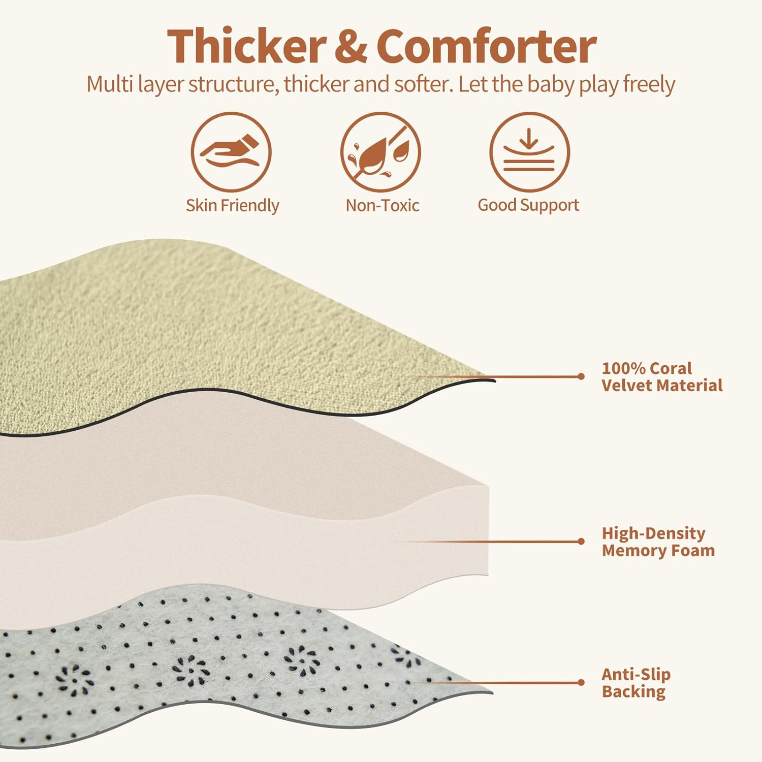 SUNYRISY Baby Play Mat for Floor 80 x 80in, 1.4in Thick Memory Foam Padded Play Mats Baby Rug, Soft Velvet Infants Toddler Kids Crawling Mat for Nursery, Non-Slip Bottom, Beige