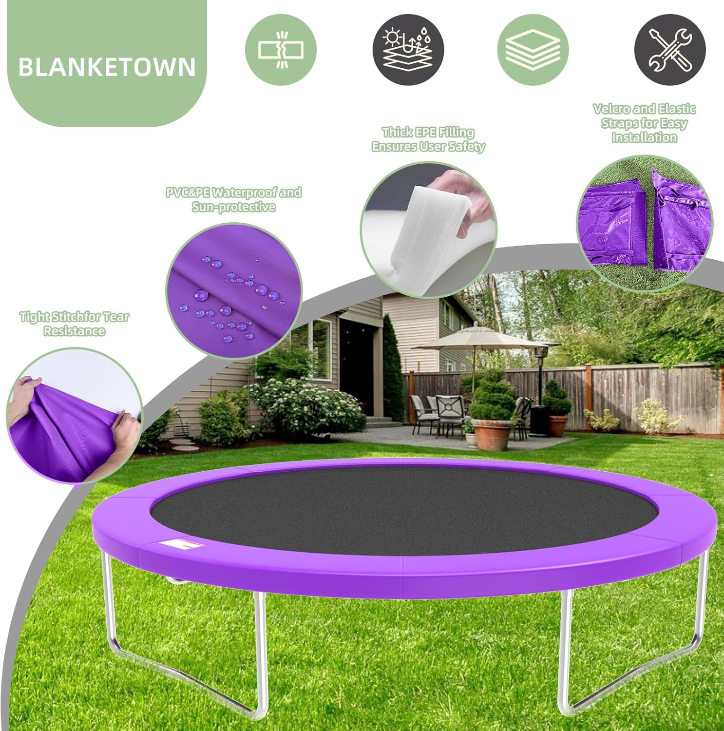 • 【Rich Configuration】Our trampoline mats come in four colors: blue, black, purple, and gray, and five sizes: 10ft, 12ft, 14ft, 15ft, and 16ft, to meet the needs of most trampolines.