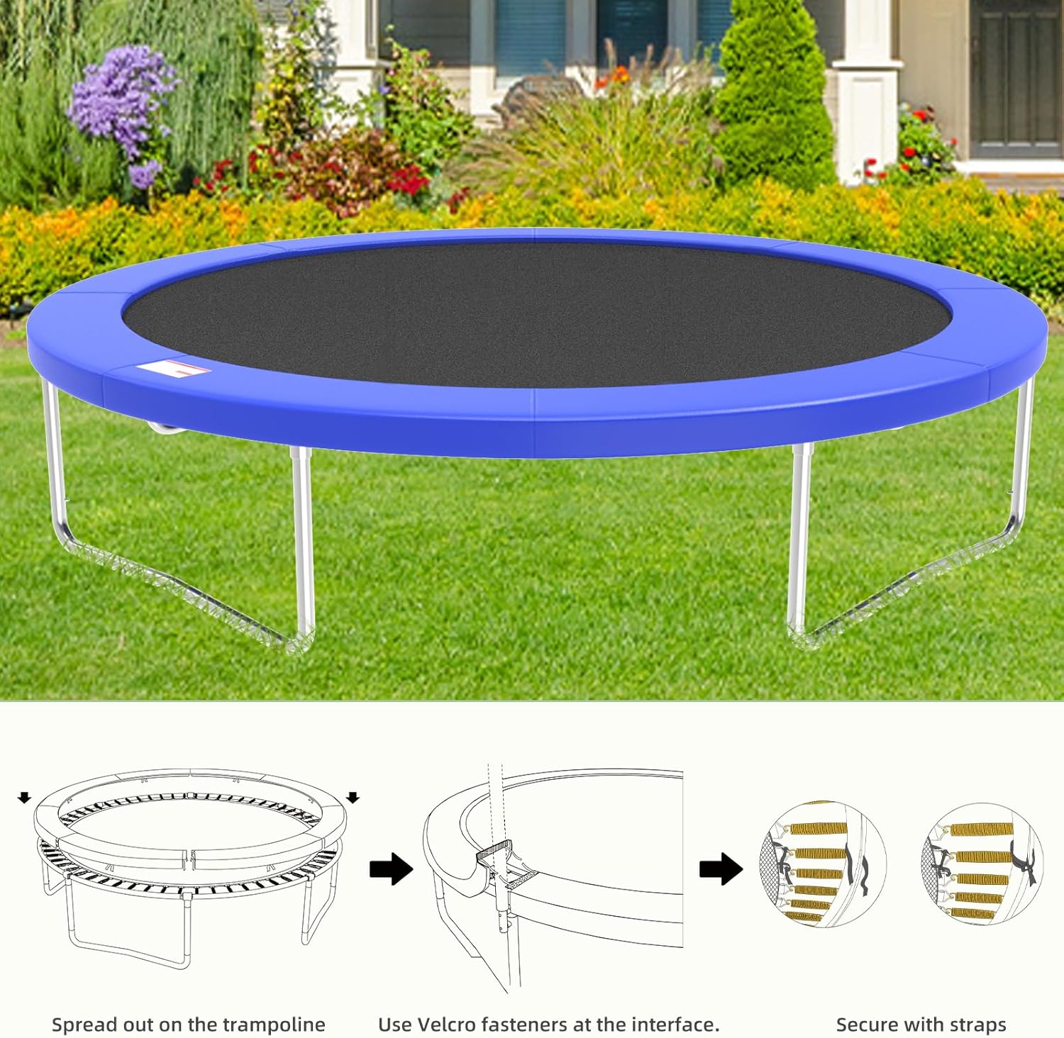 - 【Rich Configuration】Our trampoline mats come in four colors: blue, black, purple, and gray, and five sizes: 10ft, 12ft, 14ft, 15ft, and 16ft, to meet the needs of most trampolines.