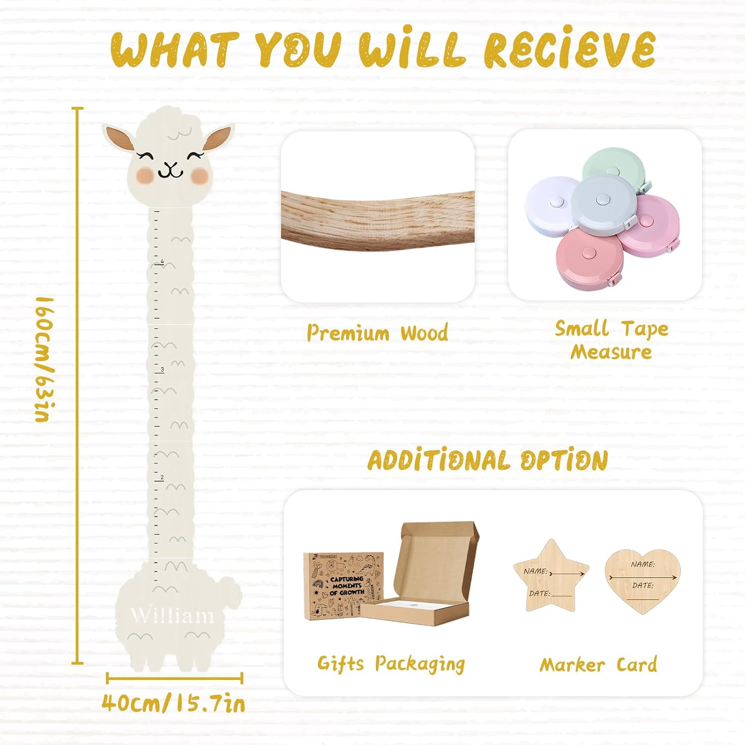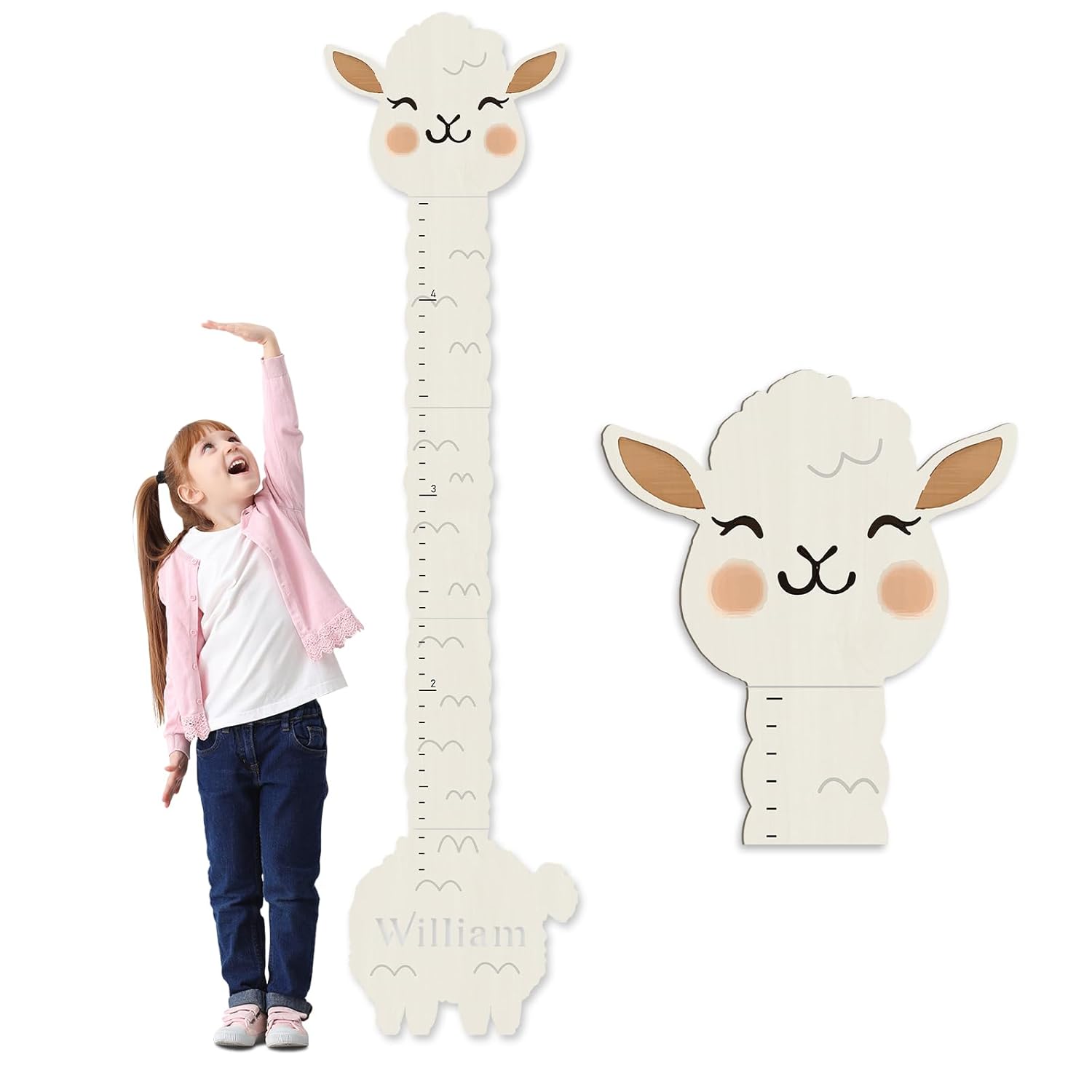 Personalized Name Height Chart for Wall, Alpaca Wood Growth Chart, Height Measurement for Wall Girls Boys Teen Room Wall Decor 63" x 15.7"