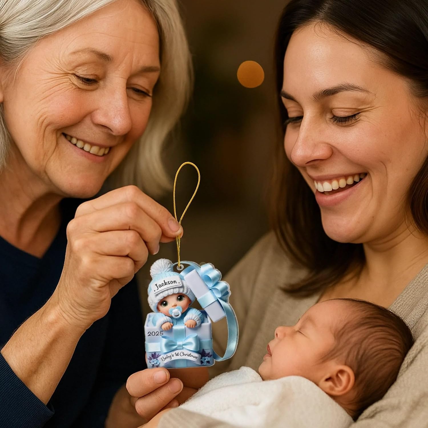 Pawfect House Custom 2D Acrylic Ornament, Personalized Christmas Baby Shower, Gender Reveal Gifts for New Moms, New Dads, Parents, Our Little Bundle's First Holiday Season, Baby Christmas Ornaments