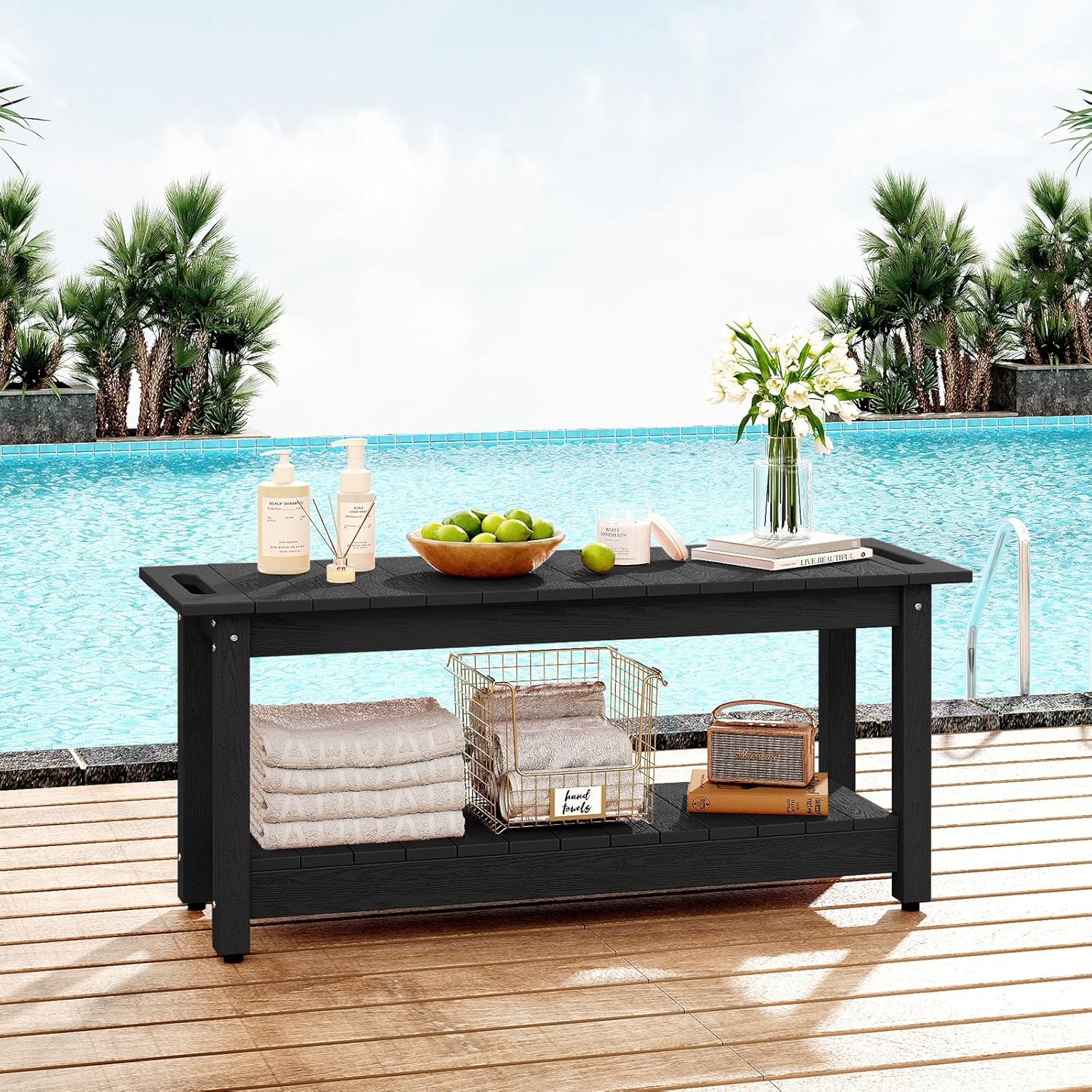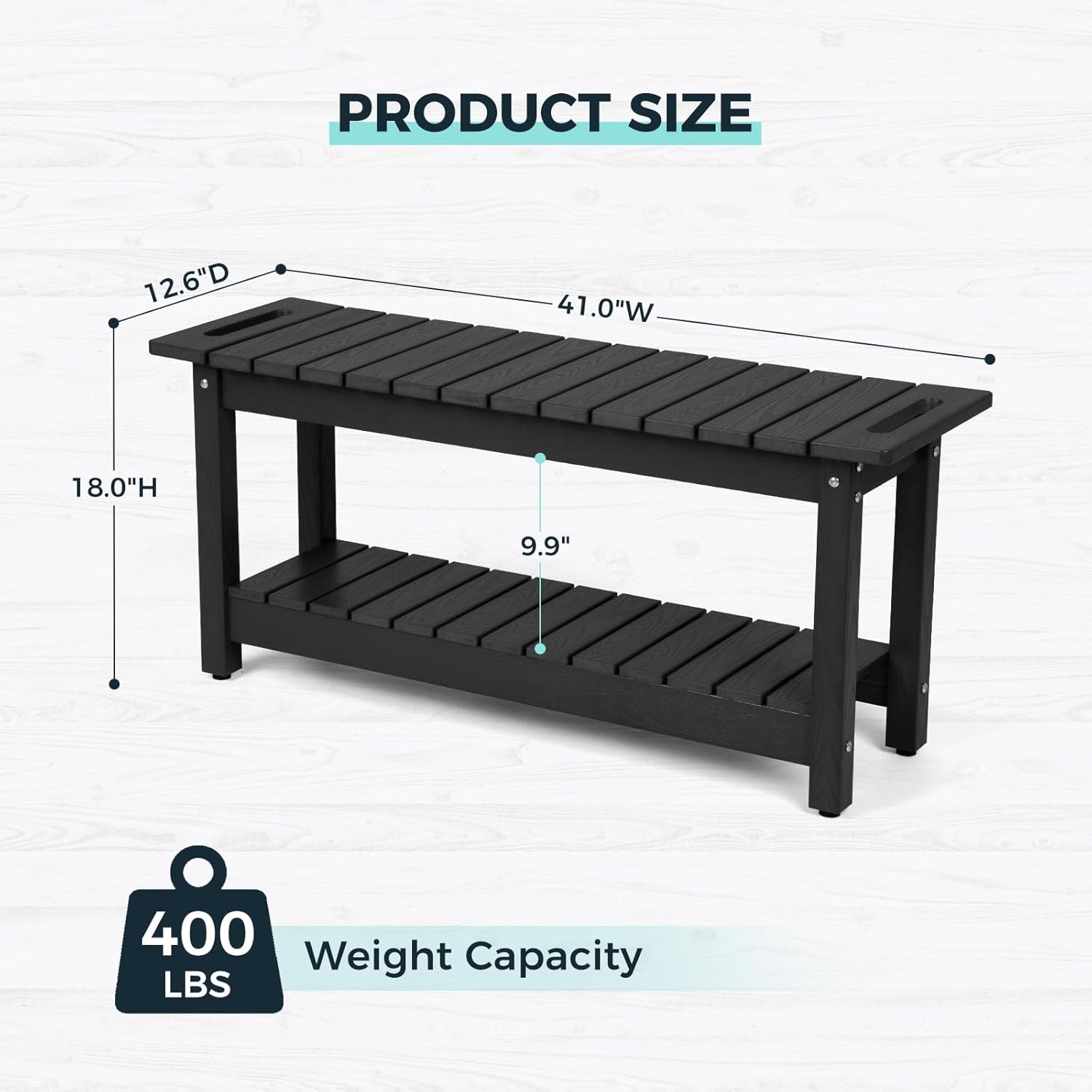 41" Shower Bench, Waterproof Poly Lumber Shower Stool for Shaving Legs, Shower Chair Seat Holds up to 400lbs, Bathroom Bench for Inside Shower, Non-Slip (Black)