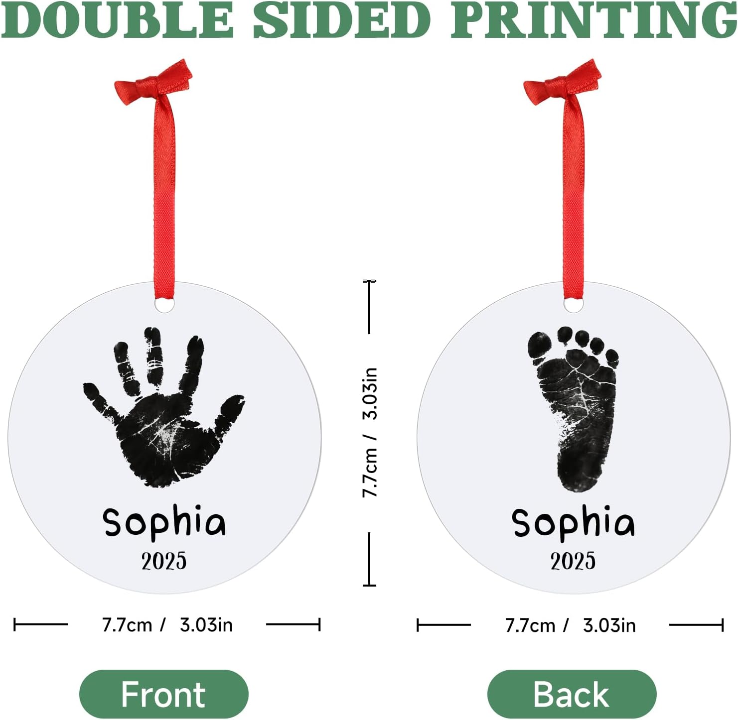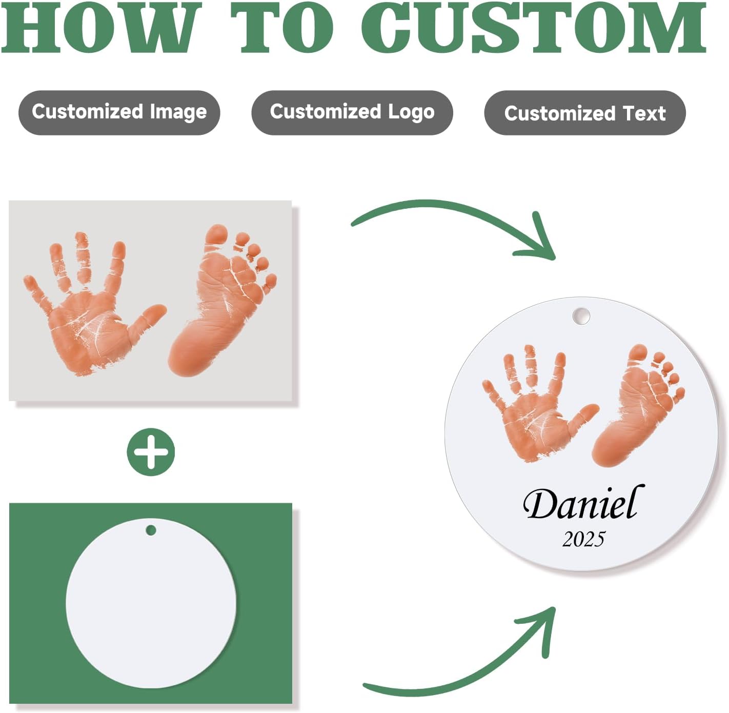 - FIRST CHRISTMAS ORNAMENT: Click "Customize Now" to upload a photo of your baby's handprint/footprint, add name and date. This personalized ornament is perfect for commemorating your baby’s first Christmas. It is suitable for both boys and girls. Personalizing your own ornament and celebrating baby's first Christmas with this cherished baby's first Christmas ornament 2025.