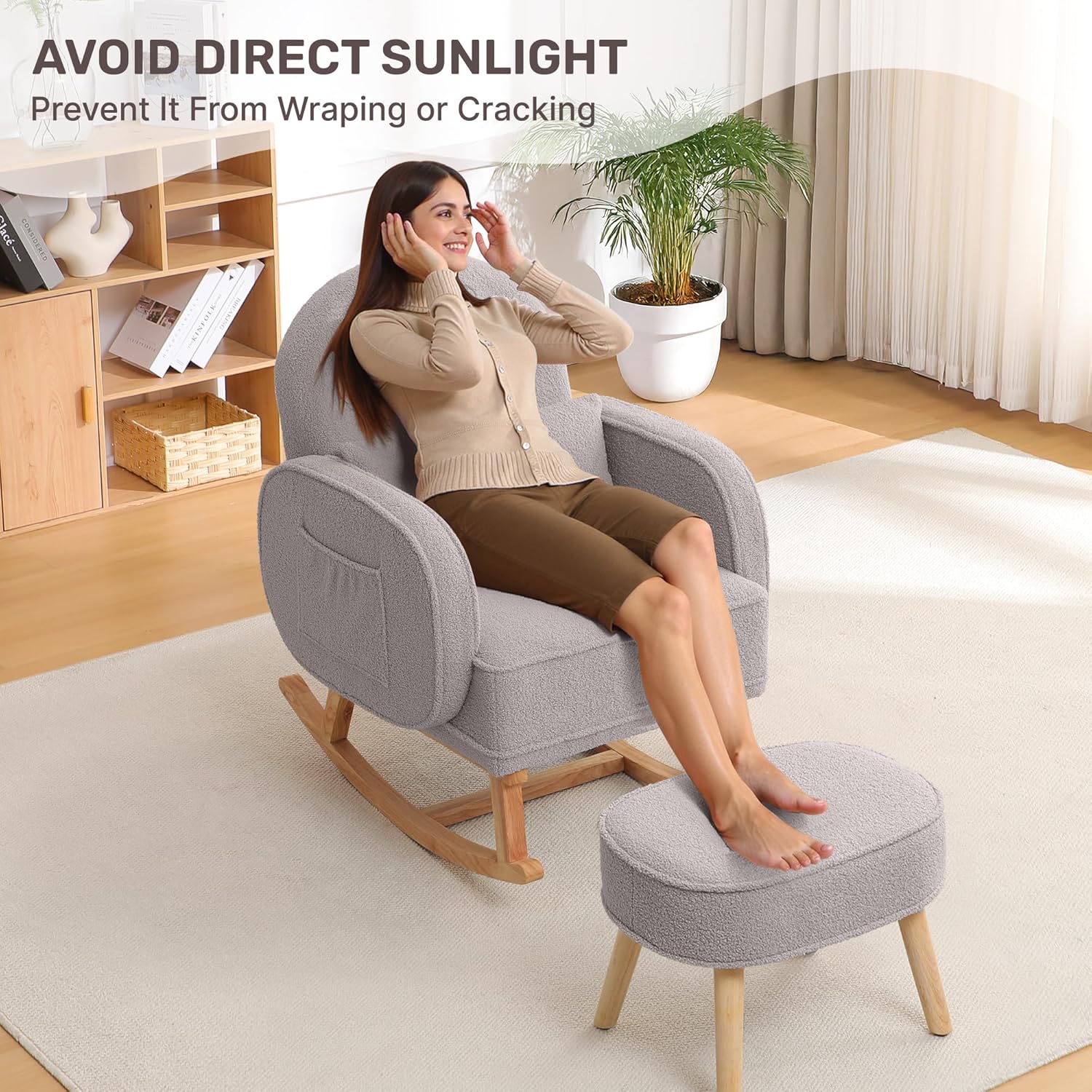 - VERSATILE STYLE: With its elegant design and soothing rocking feature, this accent chair seamlessly fits into any space—from living rooms and nurseries to bedrooms and study areas. Create your perfect relaxing spot with this inviting chair, perfect for both leisure and style