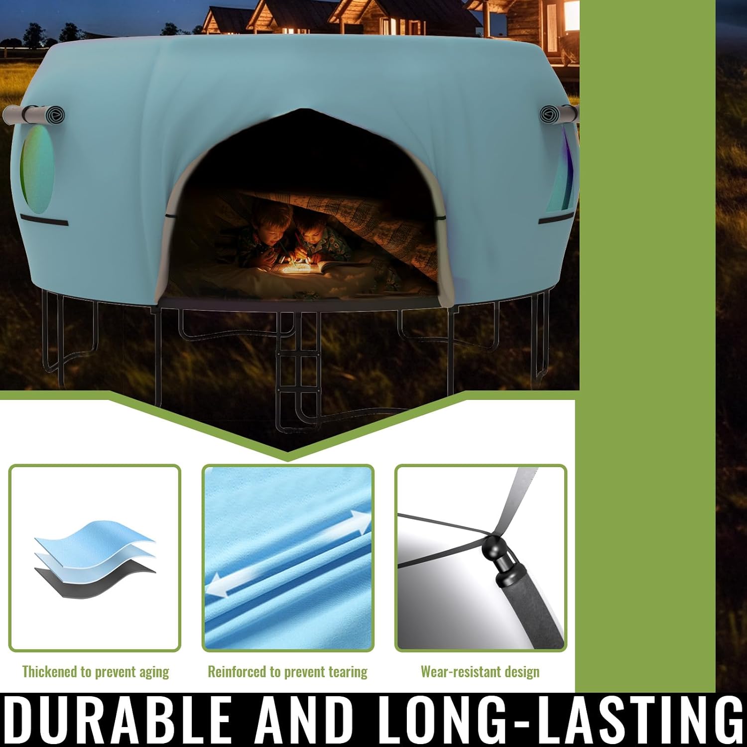 - More than a trampoline tent, it’s a shaded play area during the day and an comfort retreat at night. Use it as a trampoline shade tent or for outdoor activities like camping, picnics, and parties, making it an essential trampoline accessory for your backyard.