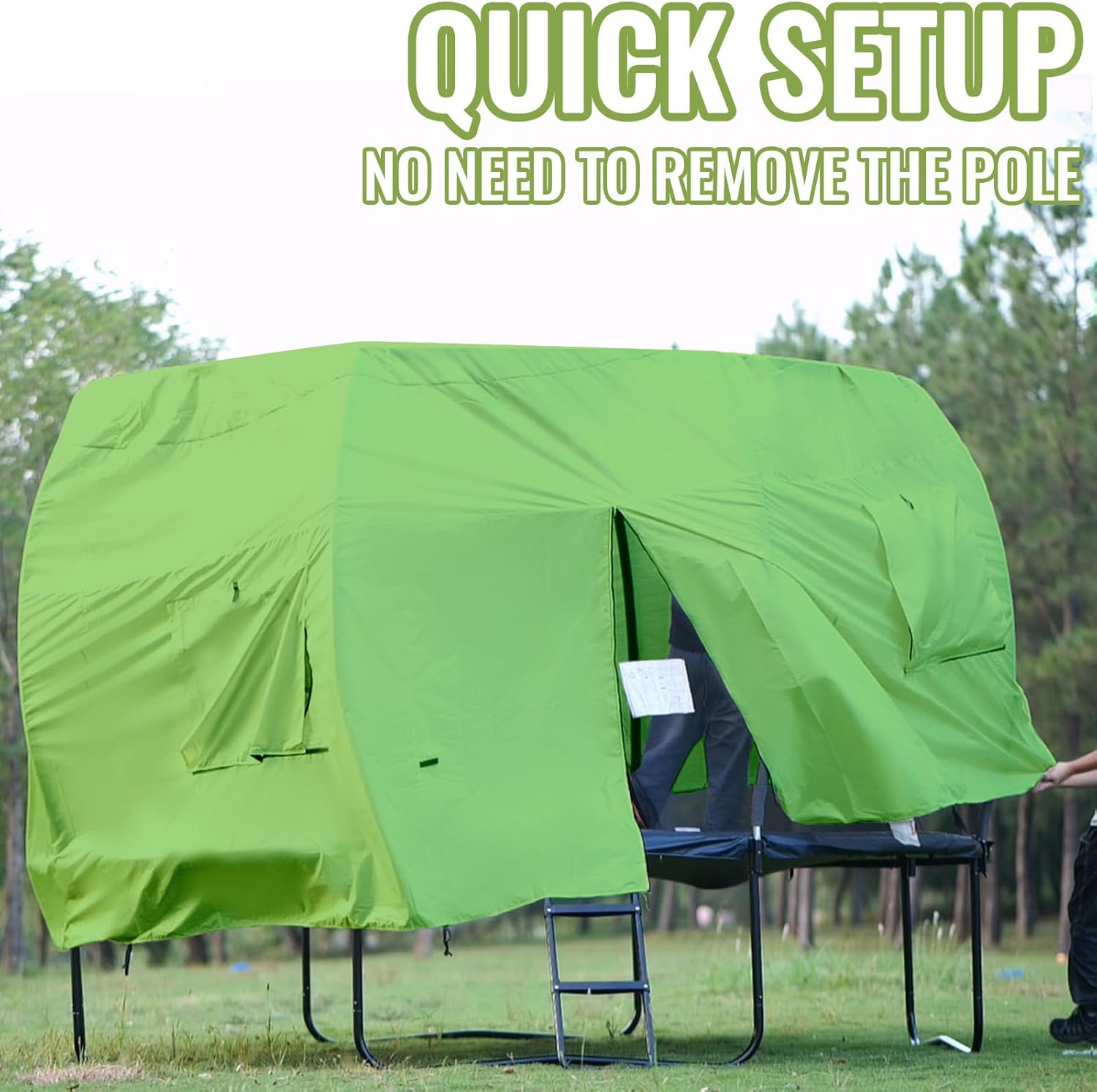- This trampoline tent offers quick assembly and easy installation. This trampoline tent includes video tutorials and detailed instructions for hassle-free setup. A top choice in trampoline accessories for creating a fun, safe, and functional trampoline experience.